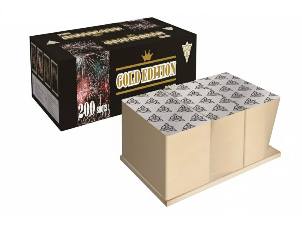 Kompaktní ohňostroj Gold Edition 1365 g je doprovázený mnohými různobarevnými efekty. Do vzduchu vypálí 200 ran ráže 20 mm, celá show trvá 95 vteřin.